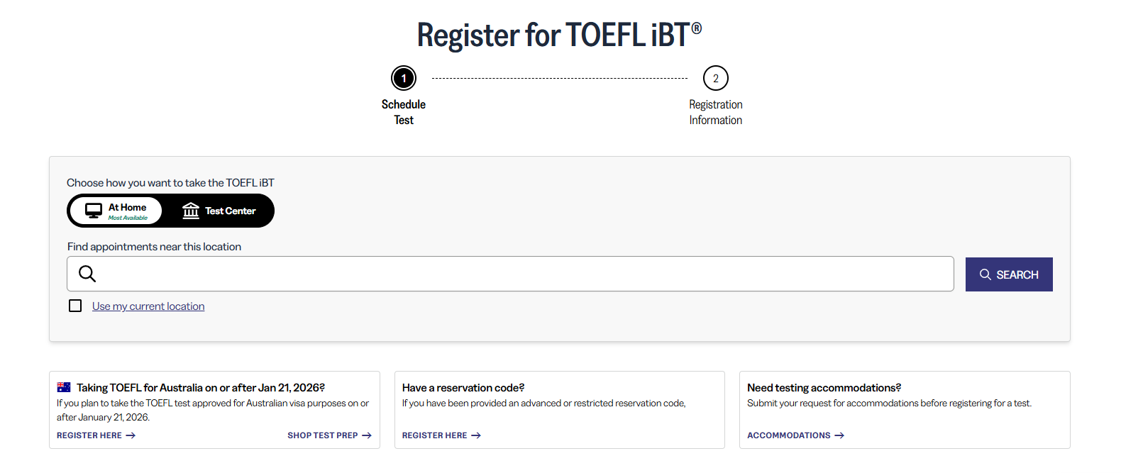 点击 链接 报名TOEFL iBT Australia考试