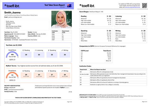 ✔ TOEFL iBT Australia scores are provided in the 0-120 scale. As of January 21, 2026, only TOEFL iBT Australia tests meet DHA requirements for visa purposes, making your move to Australia much easier.
